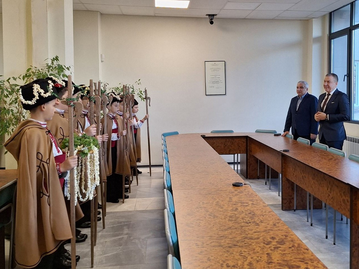 Кметът на Несебър Николай Димитров, заедно със заместник-кметовете Виктор Борисов и Иван Гургов, посрещна коледарчета от ОУ „Св. св. Кирил и Методий“ - Свети Влас в сградата на Общинската администрация.