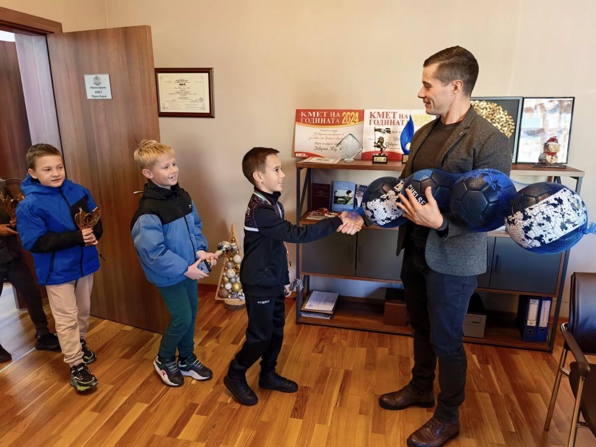 В знак на подкрепа и насърчение към детско-юношеския спорт, кметът Марин Киров подари на отбора футболни топки и пожела на децата здраве, упоритост и още много бъдещи успехи, които да носят радост на Царево.