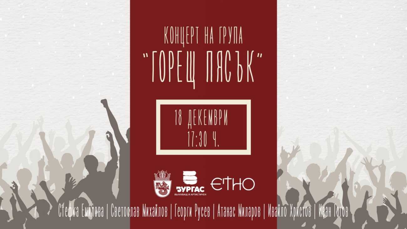 В четвъртък температурите ще се покачат с градуса на музиката! От 17:30 ч. в двора на Етно кафене и музей на ул. „Славянска 69“ любимата бургаска група „Горещ пясък“ ще ви подари концерт с много празничен заряд.
