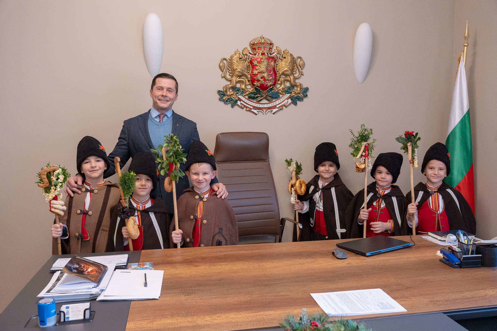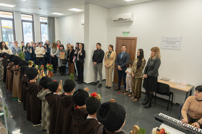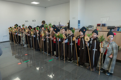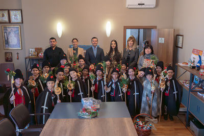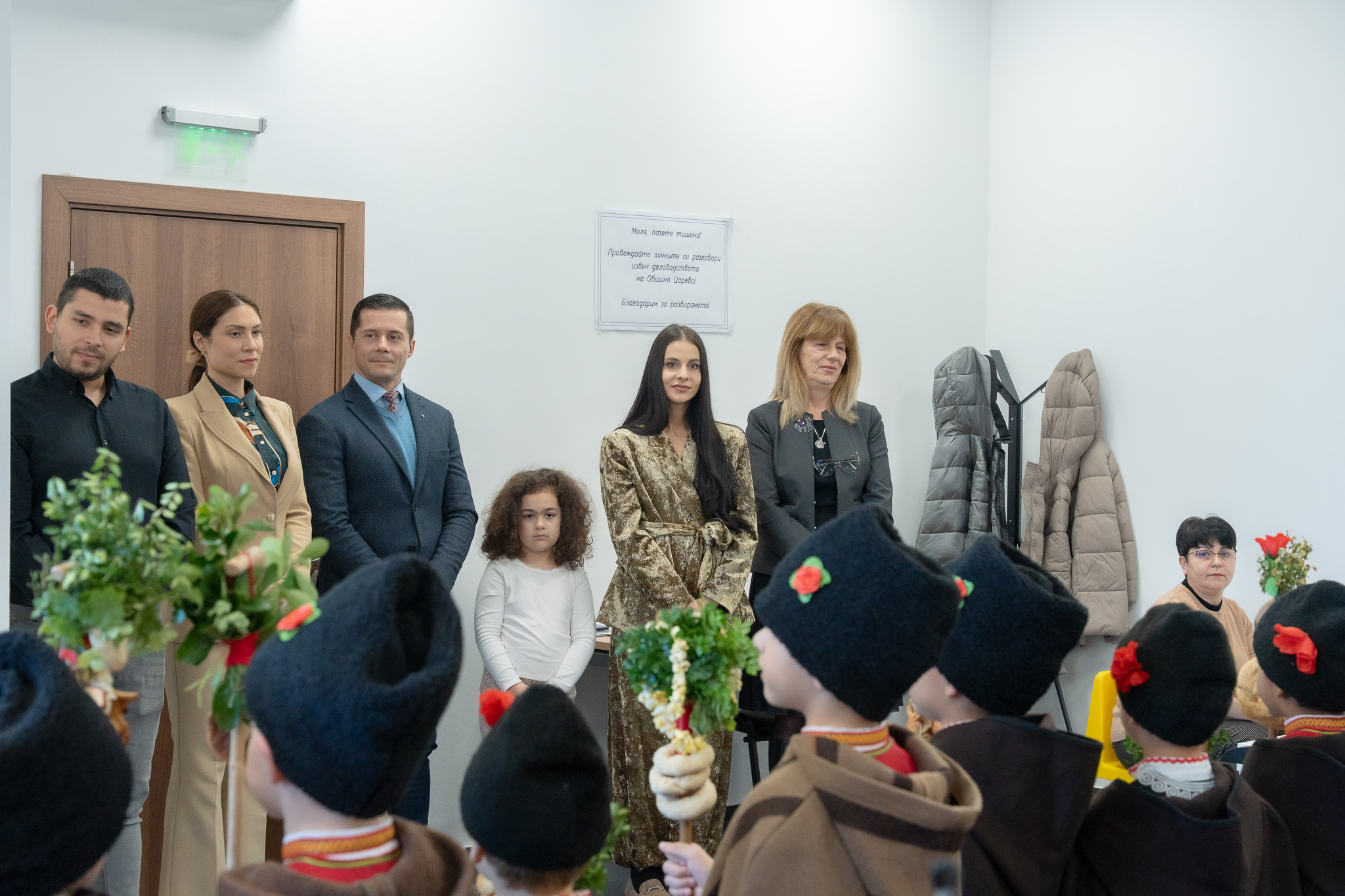 Децата, облечени в автентични български носии, пресъздадоха духа на българския обичай „Коледуване“, като внесоха топлина и радост в административната сграда на общината