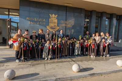 Децата, облечени в автентични български носии, пресъздадоха духа на българския обичай „Коледуване“, като внесоха топлина и радост в административната сграда на общината.