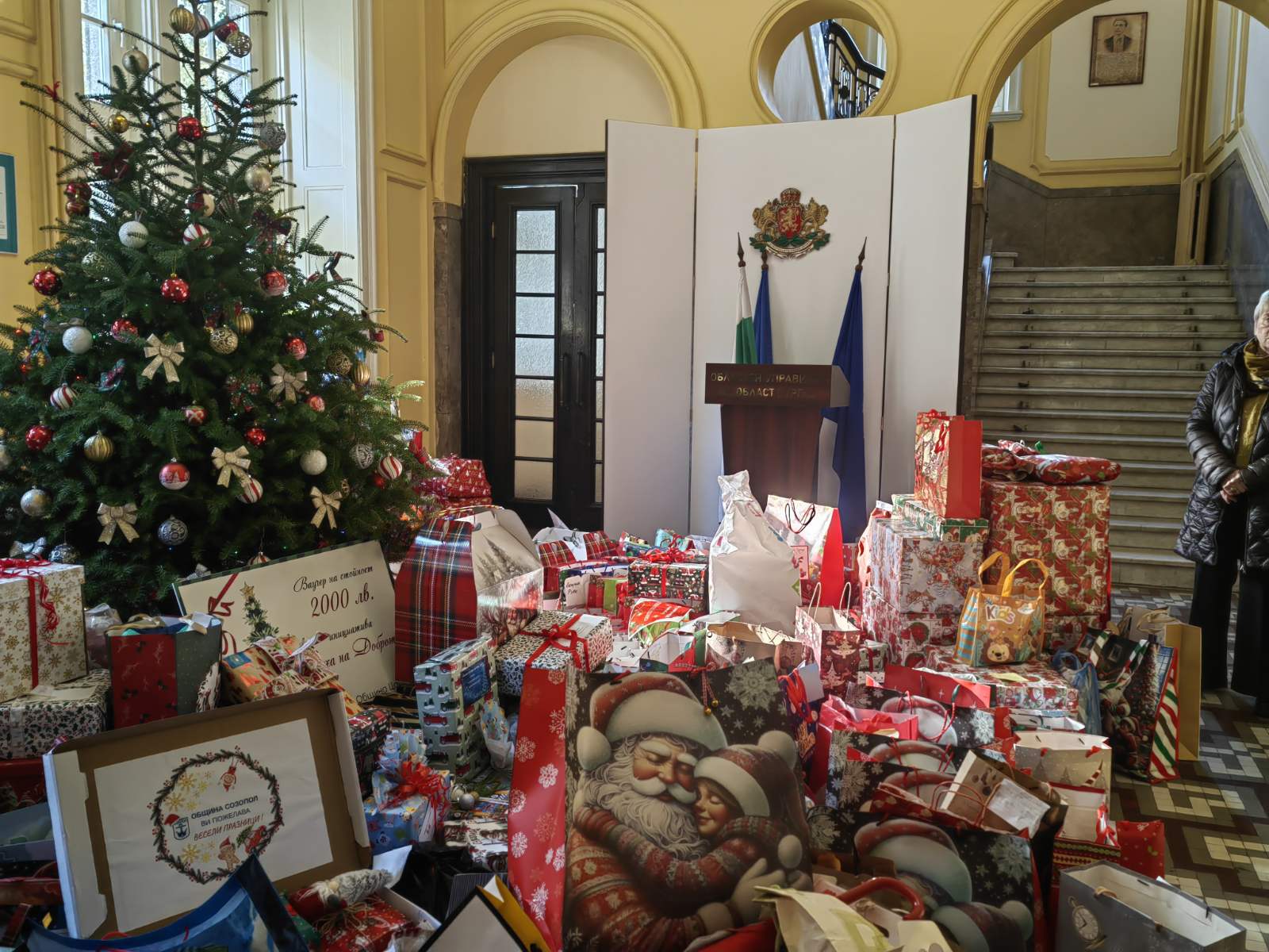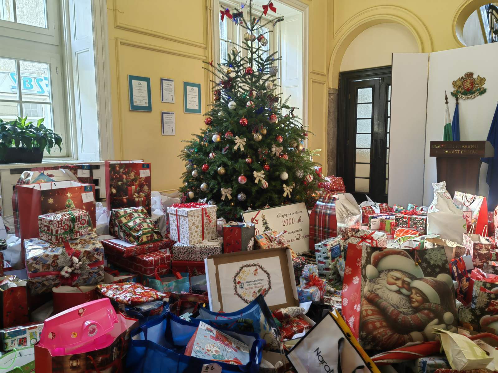 Фоайето на Областната администрация се препълни със стотици коледни дарове за деца в нужда