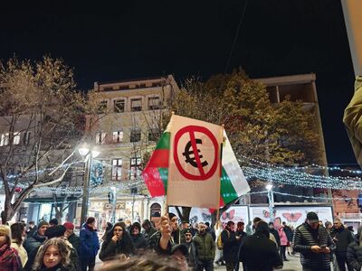 Въпреки че демонстрацията бе на ПП-ДБ не липсваха и призиви за запазване на българския лев