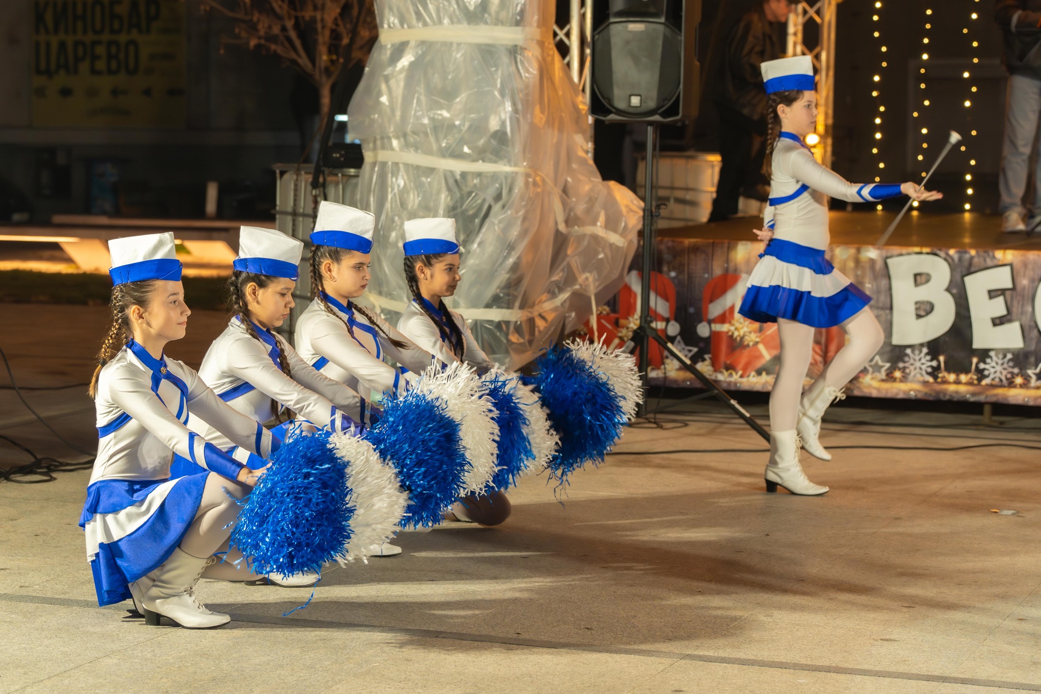 След откриването на коледния базар на централния площад, сцената се изпълни с ритъм и празнично настроение благодарение на изпълненията на мажоретния състав към СУ "Никола Й. Вапцаров"