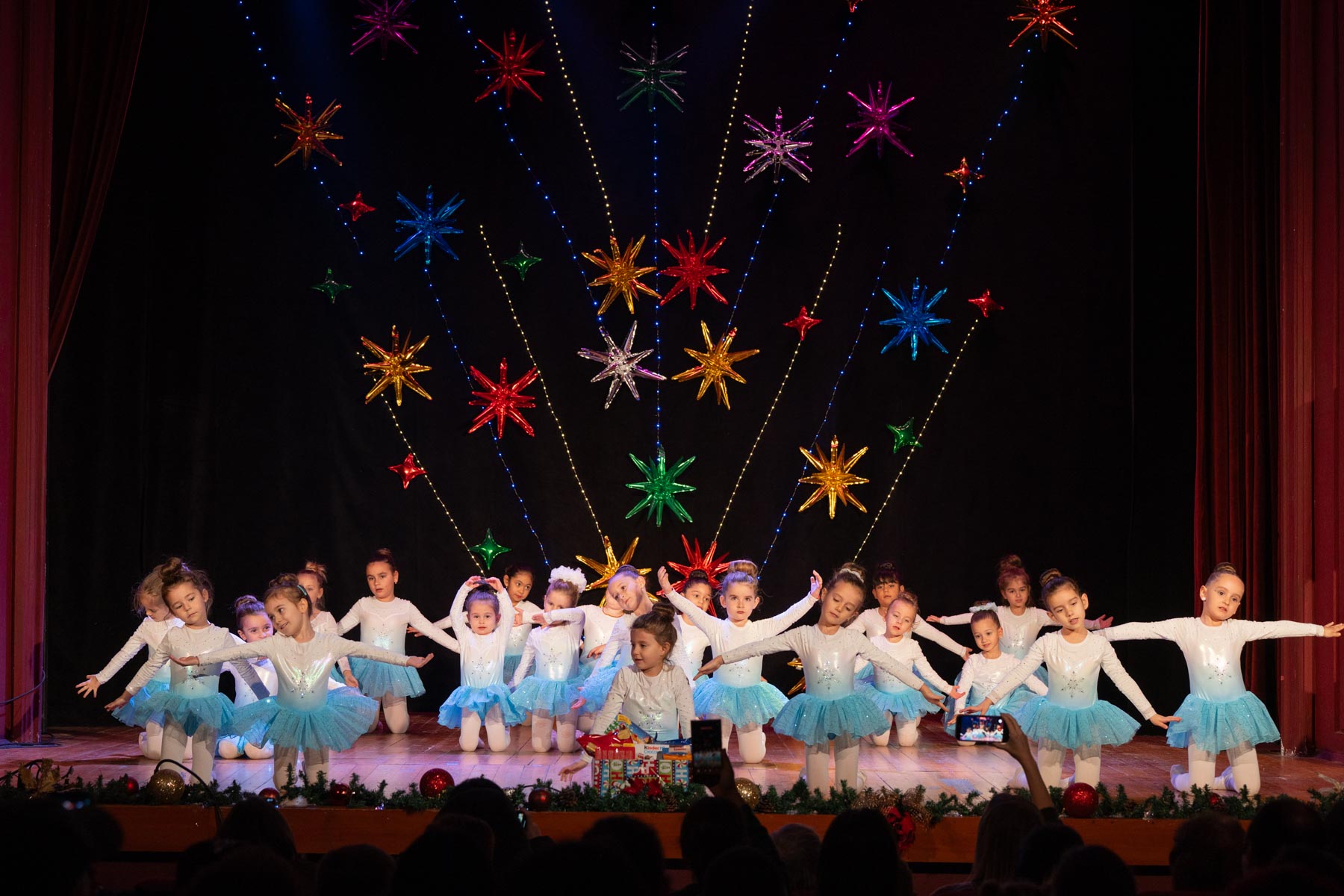 В препълнената зала своя коледен поздрав поднесе Клубът по модерни танци „Съншайнс“. Танцьорите впечатлиха със стилна и динамична хореография, в която съвременното танцово изкуство се преплете с празнични послания. Енергията на сцената и топлият отклик на публиката превърнаха изпълнението в един от най-емоционалните моменти на вечерта.