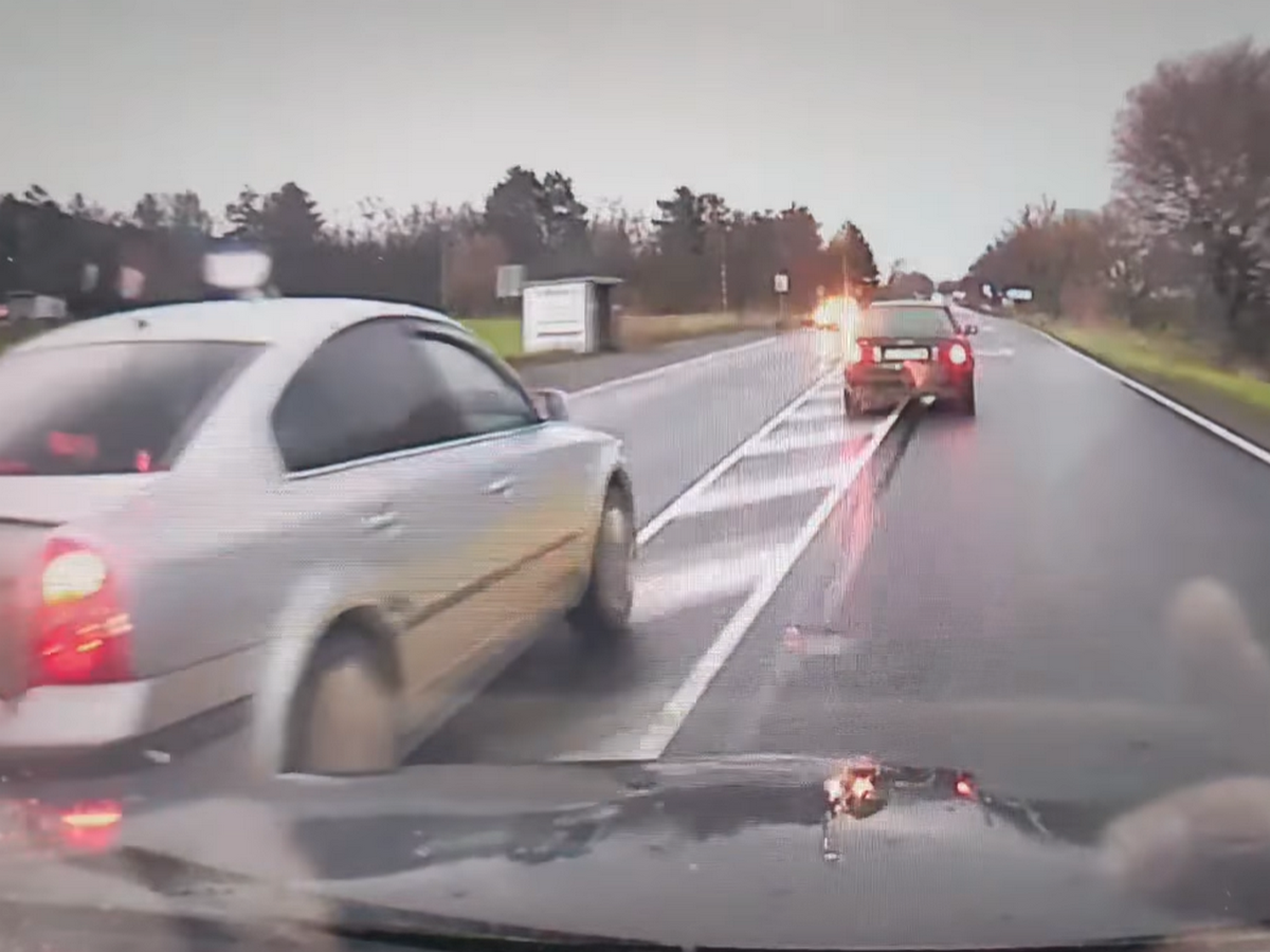 Колата е с бургаска регистрация, движи се в посока Бургас и малко преди отбивката за с. Съдиево прави опасната маневра. Участъкът е част от Подбалканския път и е натоварен през цялото време. Именно и по време на рисковото има коли, които пътуват в посока Айтос. Джигитът минава между две коли, които дават мигач за село Съдиево. Буквално успява да се „шмугне“ между тях, а след това минава в дясната лента.