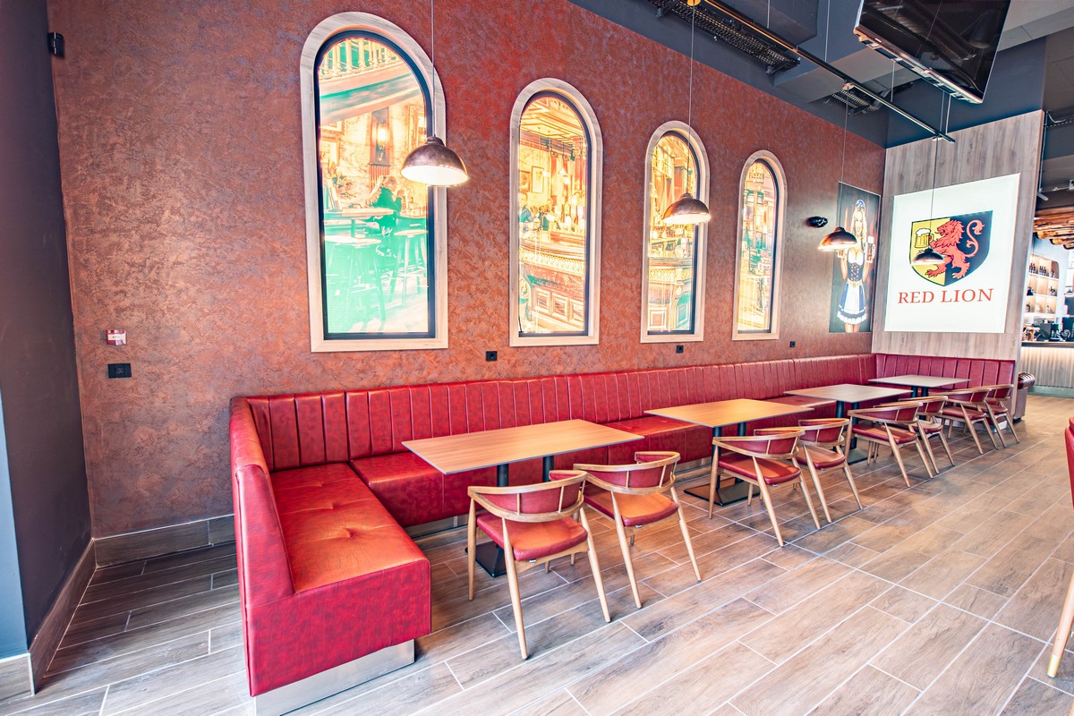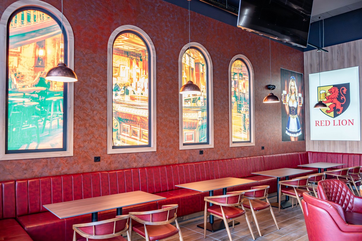 Red Lion разполага и с големи екрани за спортни събития – футбол, бокс и други срещи, които традиционно се гледат в бирарии. Тук спортът е част от вечерта.