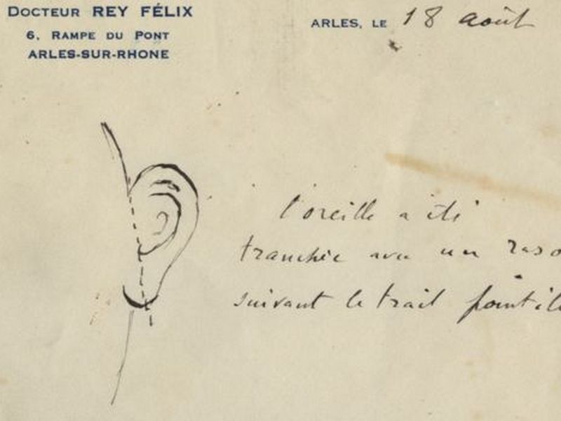 Документът, представляващ скица, създадена от лекаря, който се е грижил за Ван Гог след инцидента, показва, че художникът е отрязал почти цялото си ухо, като оставил само малка част от него. Това откритие поставя под съмнение популярното схващане, че само долната част на ухото му е била отрязана.