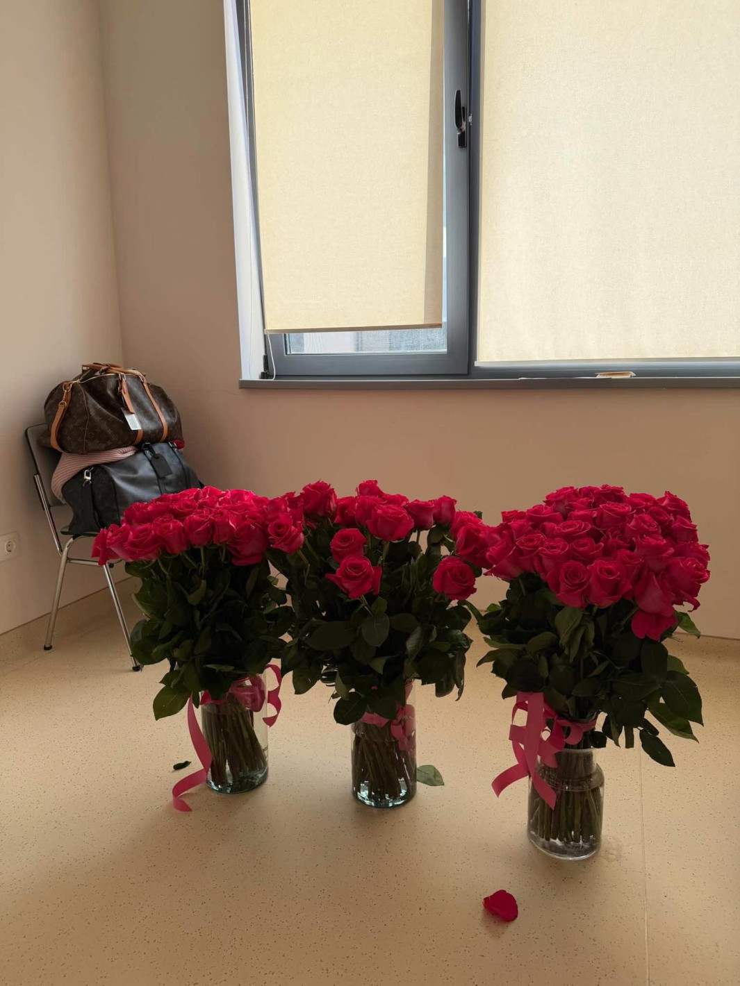 Разбира се, после се появи и снимка на бебето, което е със закрито личице, а двамата му батковци го гледат през прозореца, за да го опознаят добре. Залпът от снимки завърши с червените рози, с които Ивайло Батинков е напълнил стаята на жена си в клиниката и на самата нея – може да е родила, но е порядъчно гримирана и оправена за фотосесиите.