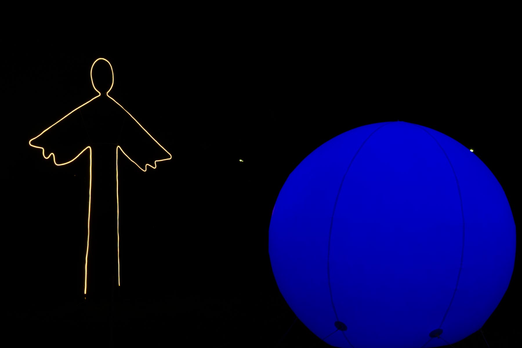 В центъра на пространството "кацнаха" три светещи ангела, съчетани със светещи топки и звуци от природата, които допълваха атмосферата с меко пулсираща светлина. Върху фасадата на съседната сграда оживя видео прожекция, вписваща мястото в обща визуална картина.