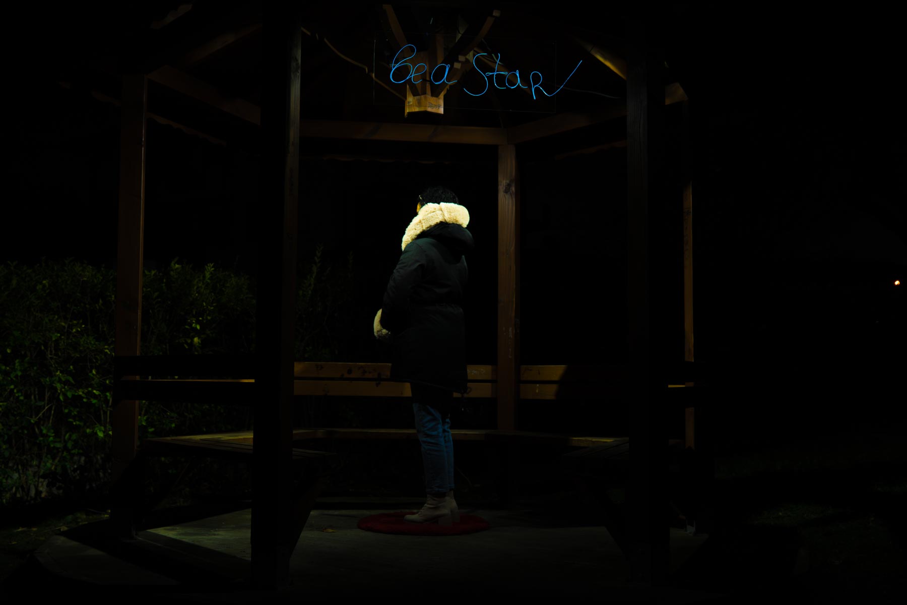 В беседката в градинката до кметството посетителите имаха възможност да преживеят интерактивната светлинна инсталация "Бъди звезда"