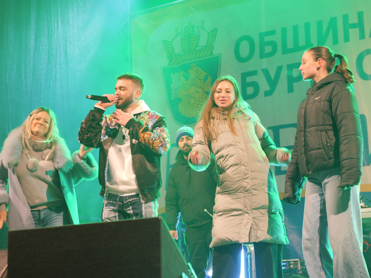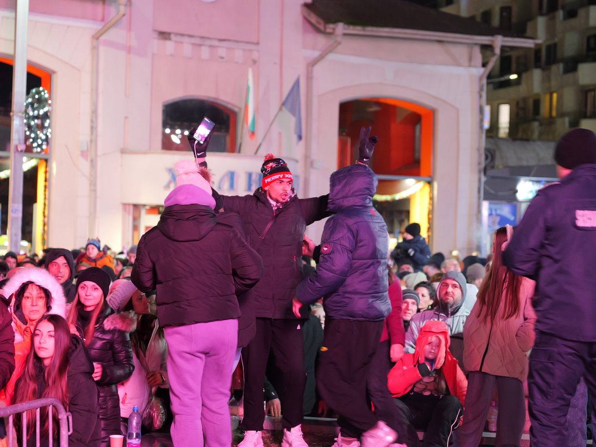 Няколко хиляди се събраха тази вечер на площад „Тройката“ в Бургас, за да посрещнат заедно 2026 година, предава дежурният редактор на Флагман.бг от мястото на събитието.