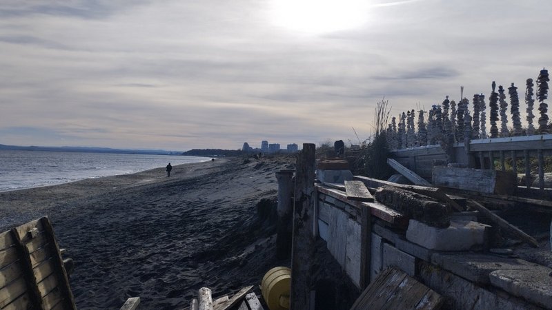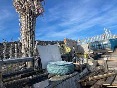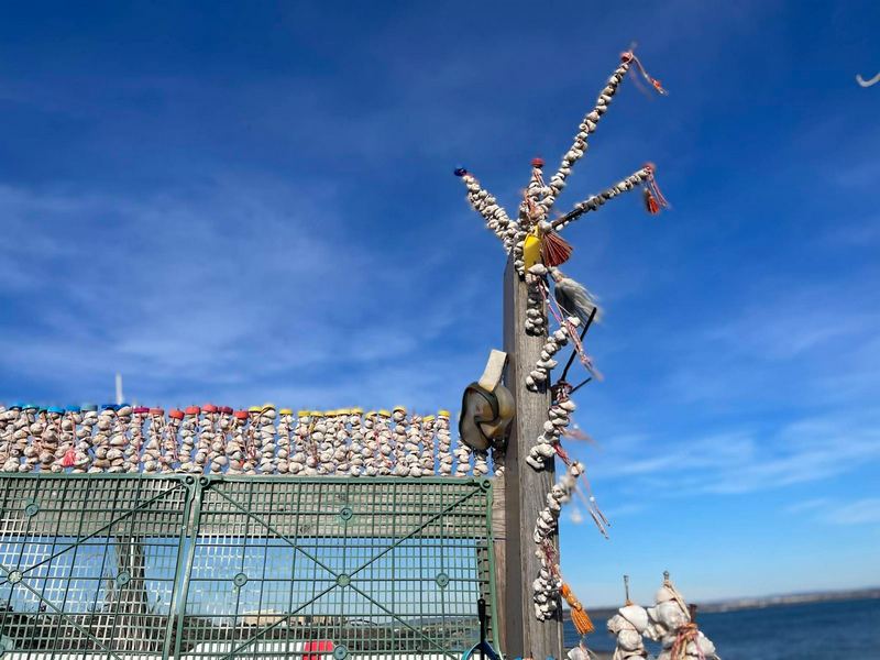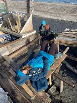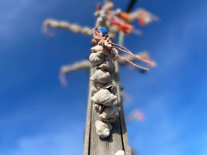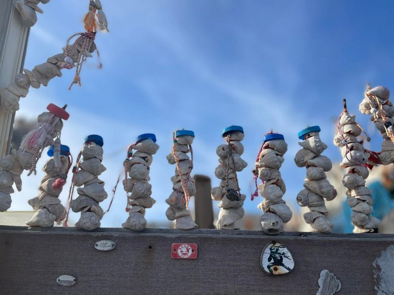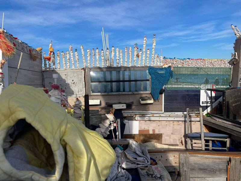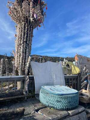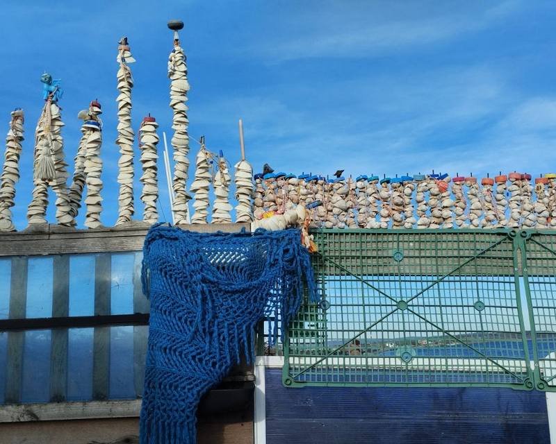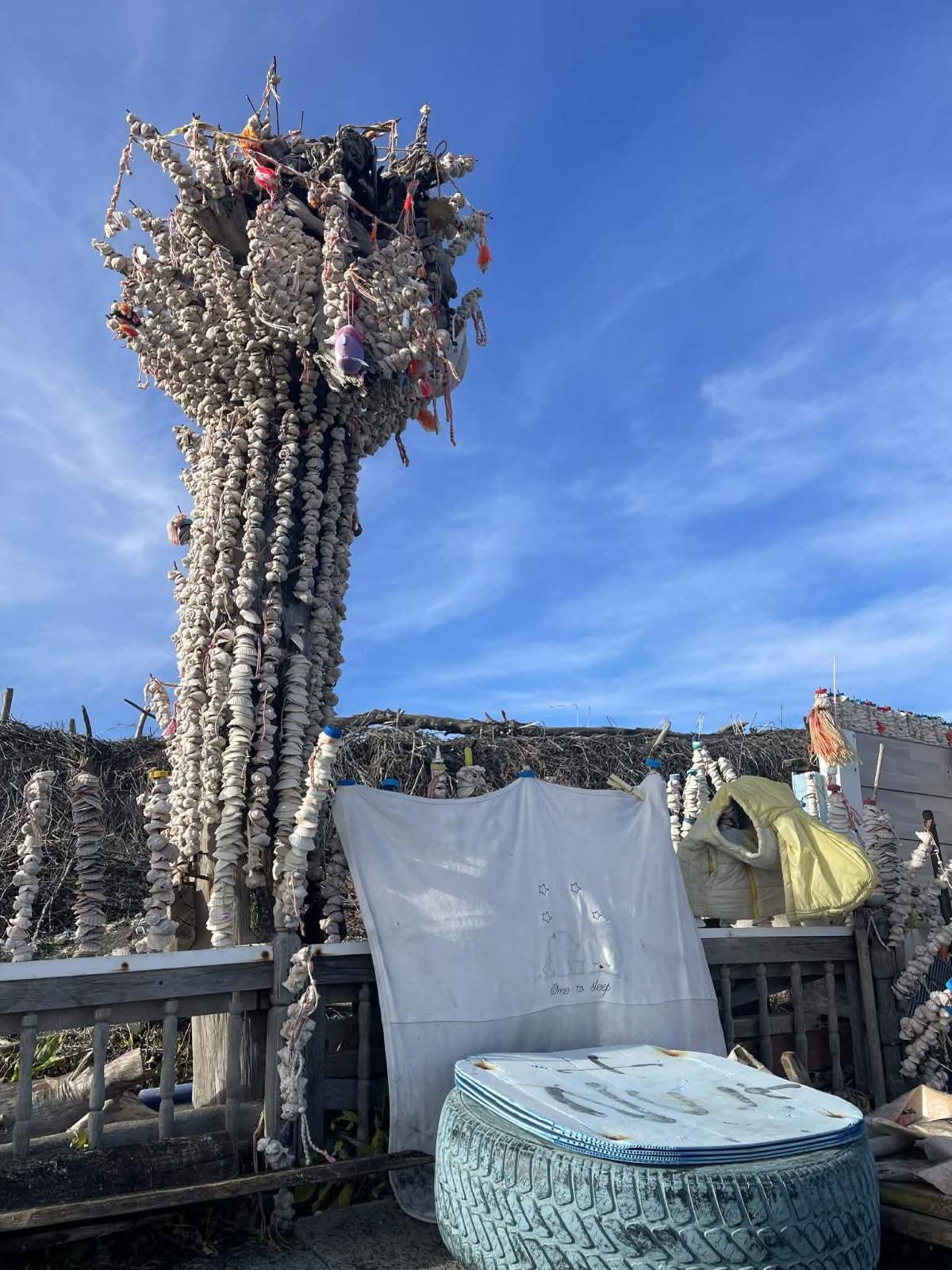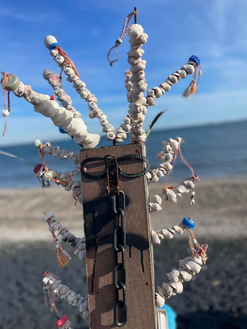 Този кът е като машина на времето. През първите дни на януари, ако сте минали случайно покрай него, може да си помислите, че тук се уединява някой странстващ скитник, отделил от времето си да го построи, а след това да съзерцава безкрая на нашия красив залив. Но тази инсталация представлява един истински свят на креативност, неспирно разказващ истории. Място, което ни връща в детските спомени, където от купчина летви, добри приятели и подръчни материали можеше да си построим вселена.
