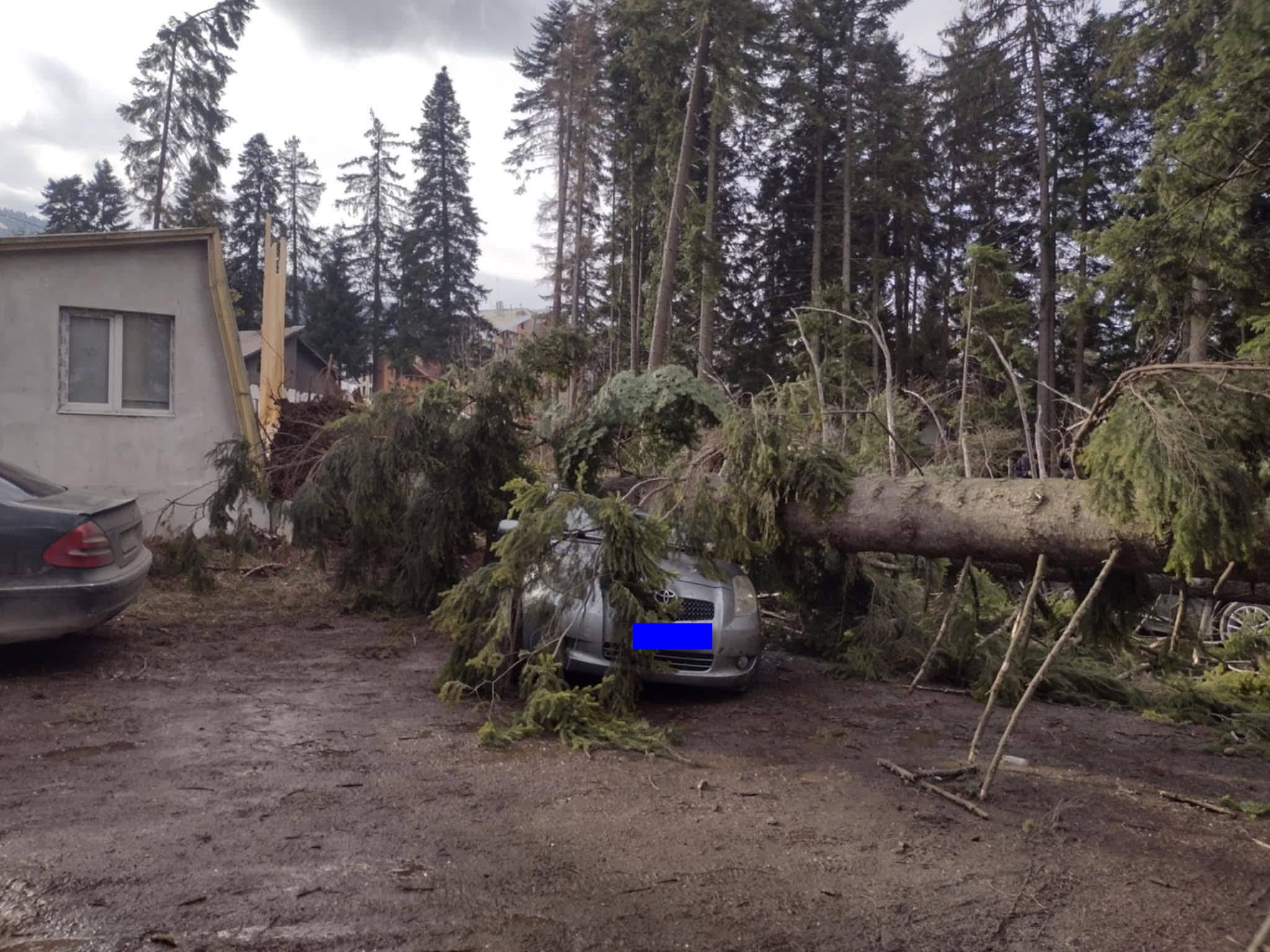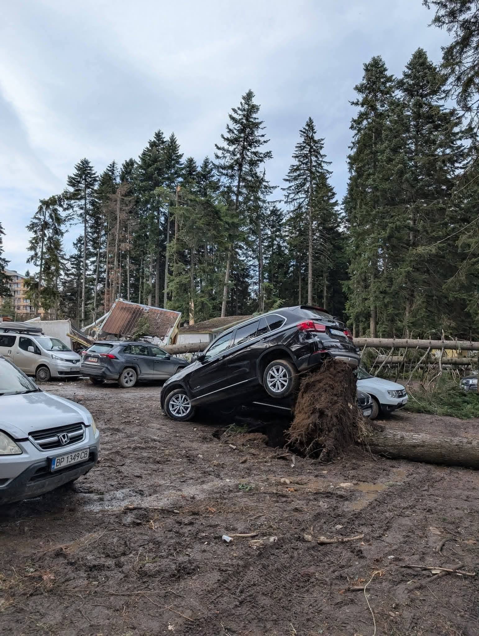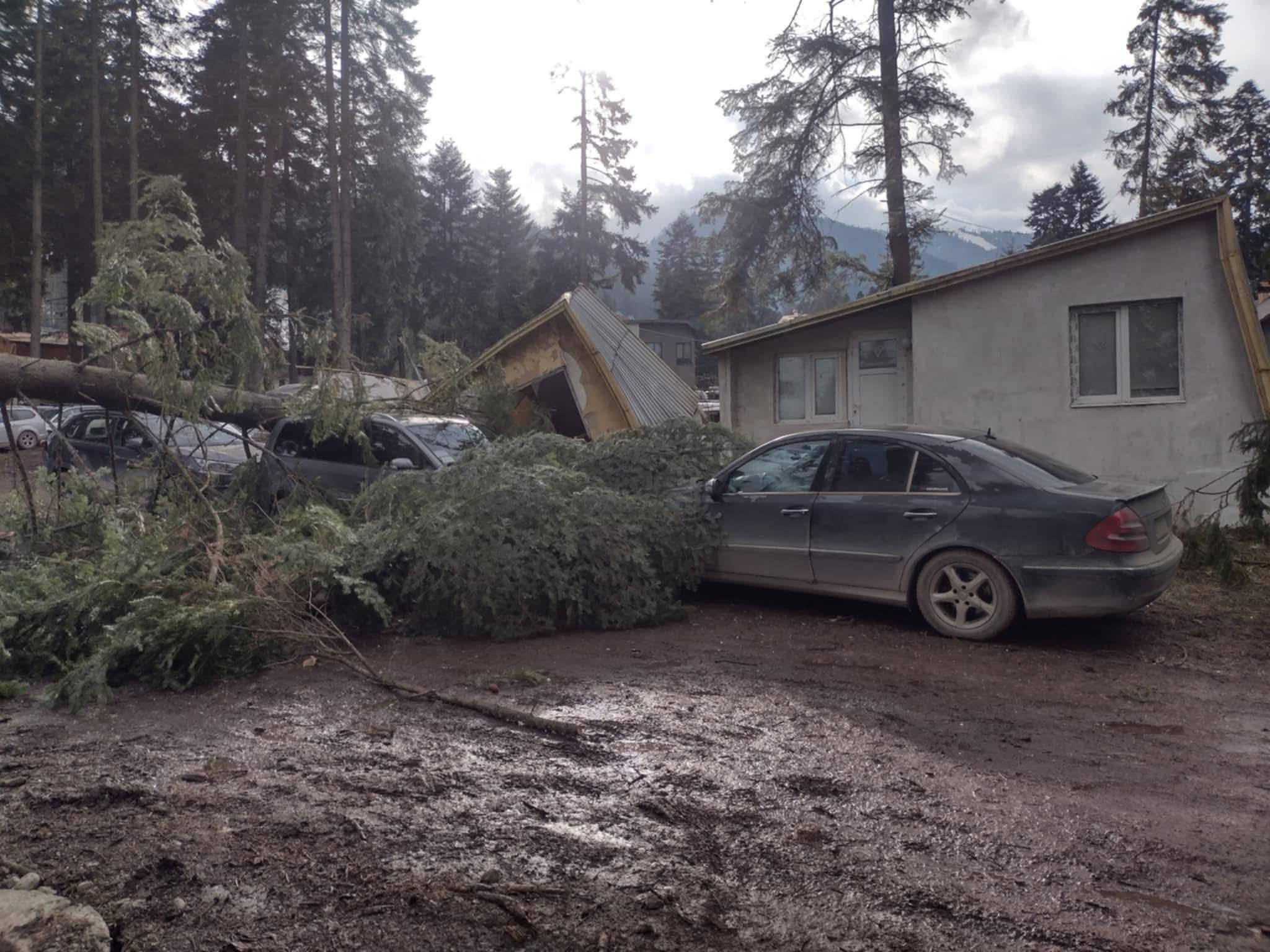 Граждани сигнализират, че буреносният вятър е прекършил огромни борове в курорта. Някои от тях са паднали върху паркираните в близост автомобили. За момента няма данни за пострадали хора. От Община Самоков съобщиха, че поради силния вятър днес ледената пързалка в Туристическата градина ще преустанови дейност.