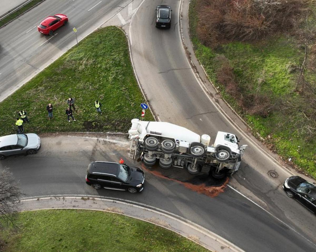 Тежкотоварен бетоновоз се обърна на разклона на бул. „Пейо К. Яворов“ към бул. „Цариградско шосе“ в София. Инцидентът е станал в час пик, когато трафикът в района е изключително интензивен.
