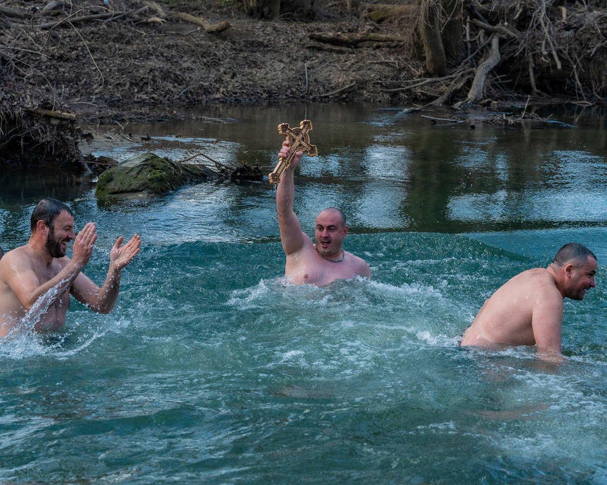 Стоян Морфов извади Светия кръст от ледените води на река Велека по време на богоявленския ритуал в село Бродилово. Обичаят, възроден преди три години след над 50-годишно прекъсване, отново събра местни жители и гости край реката.