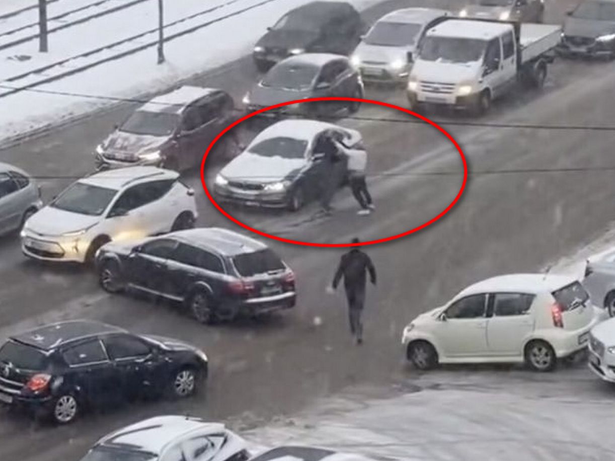 Тази сутрин заради снега в София се образуваха множество тапи и задръствания. Във Фейсбук групата "Катастрофи в София" бе публикувано видео, на което се вижда как мъж, правещ опит за забранена маневра, излиза от колата си с бухалка.