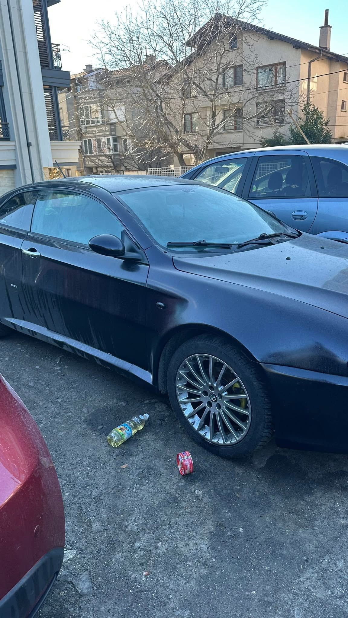 Неприятна и крайно възмутителна гледка посрещна тази сутрин собственици на автомобили в бургаския квартал Сарафово. Два автомобила осъмнаха обилно намазани и залети с пастет, олио и брашно, след като са били паркирани на поляна между улиците „Ради Николов“ и „Антон Иванов“.