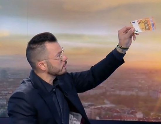 Макс Баклаян, който работи като мениджър на верига обменни бюра, демонстрира пред бТВ как най-лесно може да се разбере дали евровата банкнота е менте.