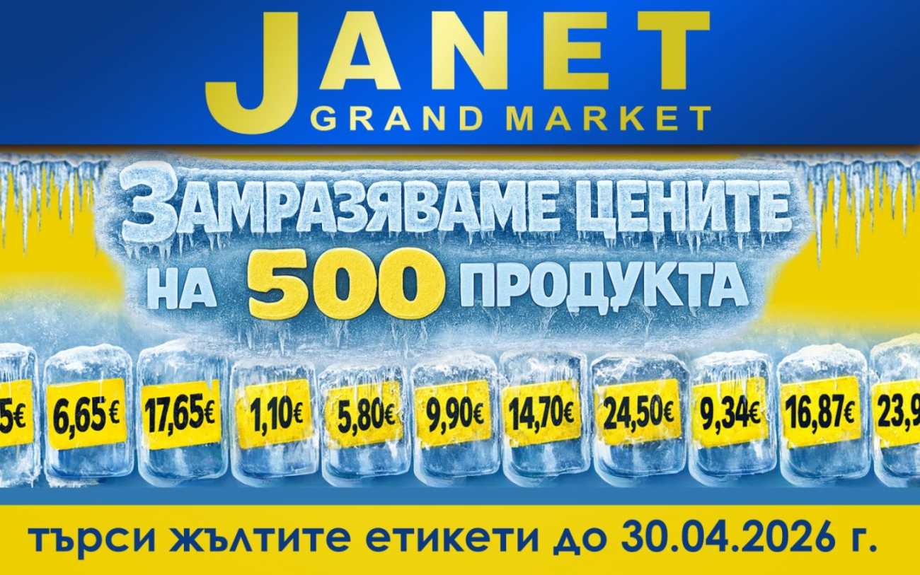 Българската търговска верига JANET обяви, че замразява цените на 500 продукта от различни категории до края на месец април. Инициативата обхваща магазините на веригата в Несебър, Слънчев бряг и Свиленград и цели да осигури по-достъпни покупки за клиентите в условията на динамична пазарна среда.