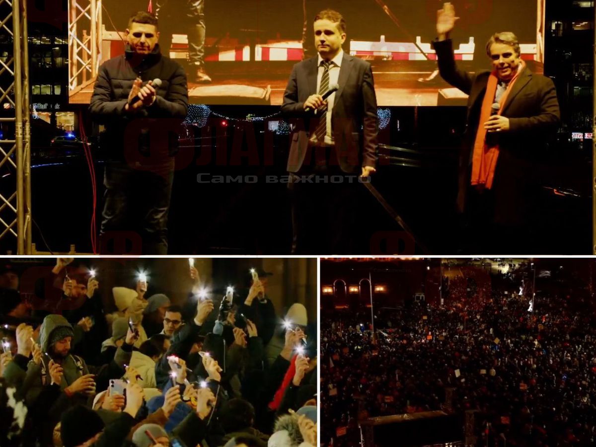 Протестът на площад „Независимост“ в т.нар. триъгълник на властта в София бе под наслов „Няма да позволим да освините и тези избори!“ и по думите на лидера на „Продължаваме промяната“ Асен Василев броят на хората на площада е колкото на първия протест срещу Бюджет 2026.
