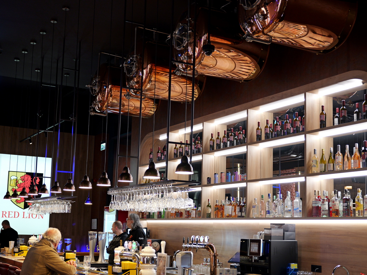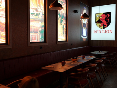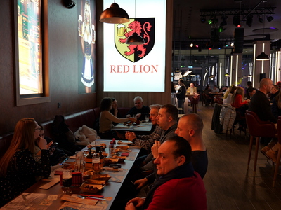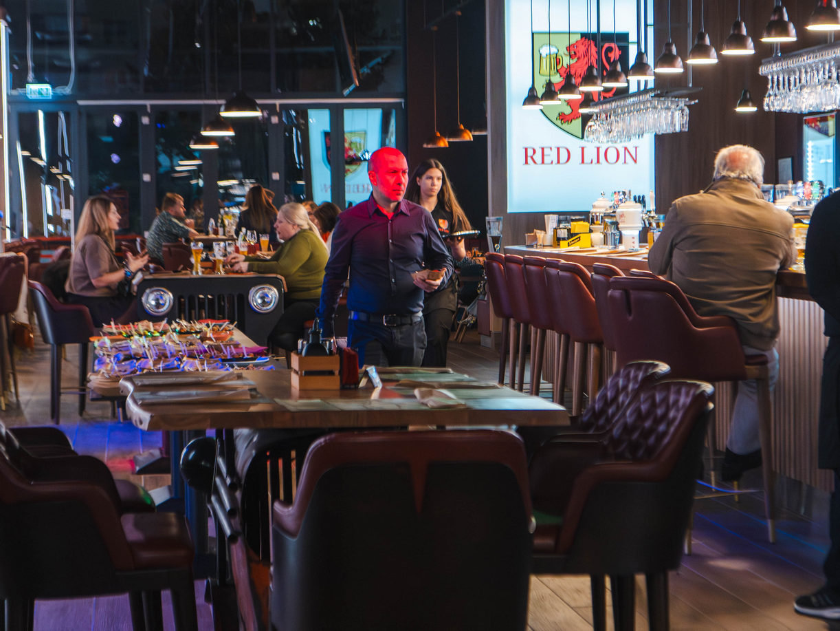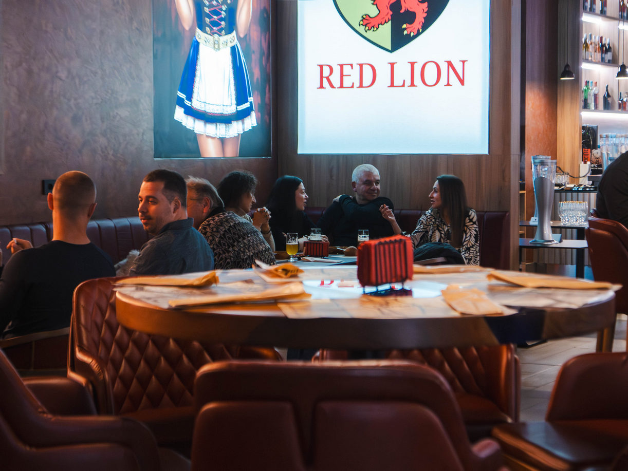 Red Lion комбинира това, което досега липсва на едно място - 8 крана наливна бира, градска кухня, големи екрани за спортни събития и сцена за жива музика. Пространството е широко, модерно и създадено за компании, които искат да гледат мач, да вечерят и да останат по-дълго.