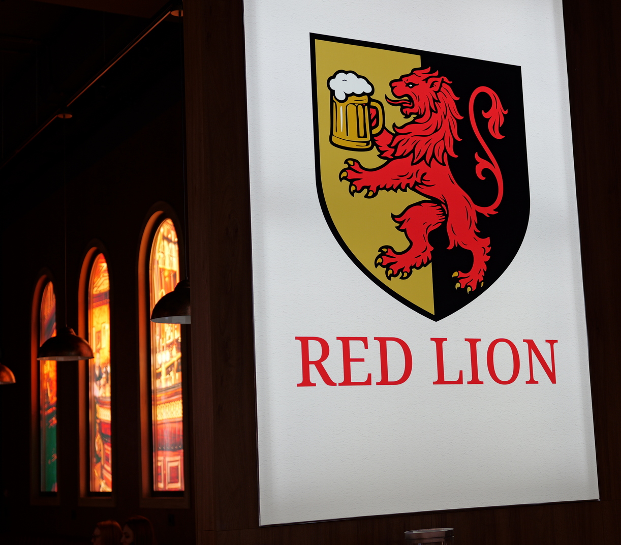 Особен акцент е спортната линия - Red Lion е място за гледане на футбол, бокс и големи спортни събития, с ясен образ и добър звук, така че мачът да се вижда и чува от всяка точка. Големите екрани са разположени стратегически, без да доминират над пространството, а да го продължат.