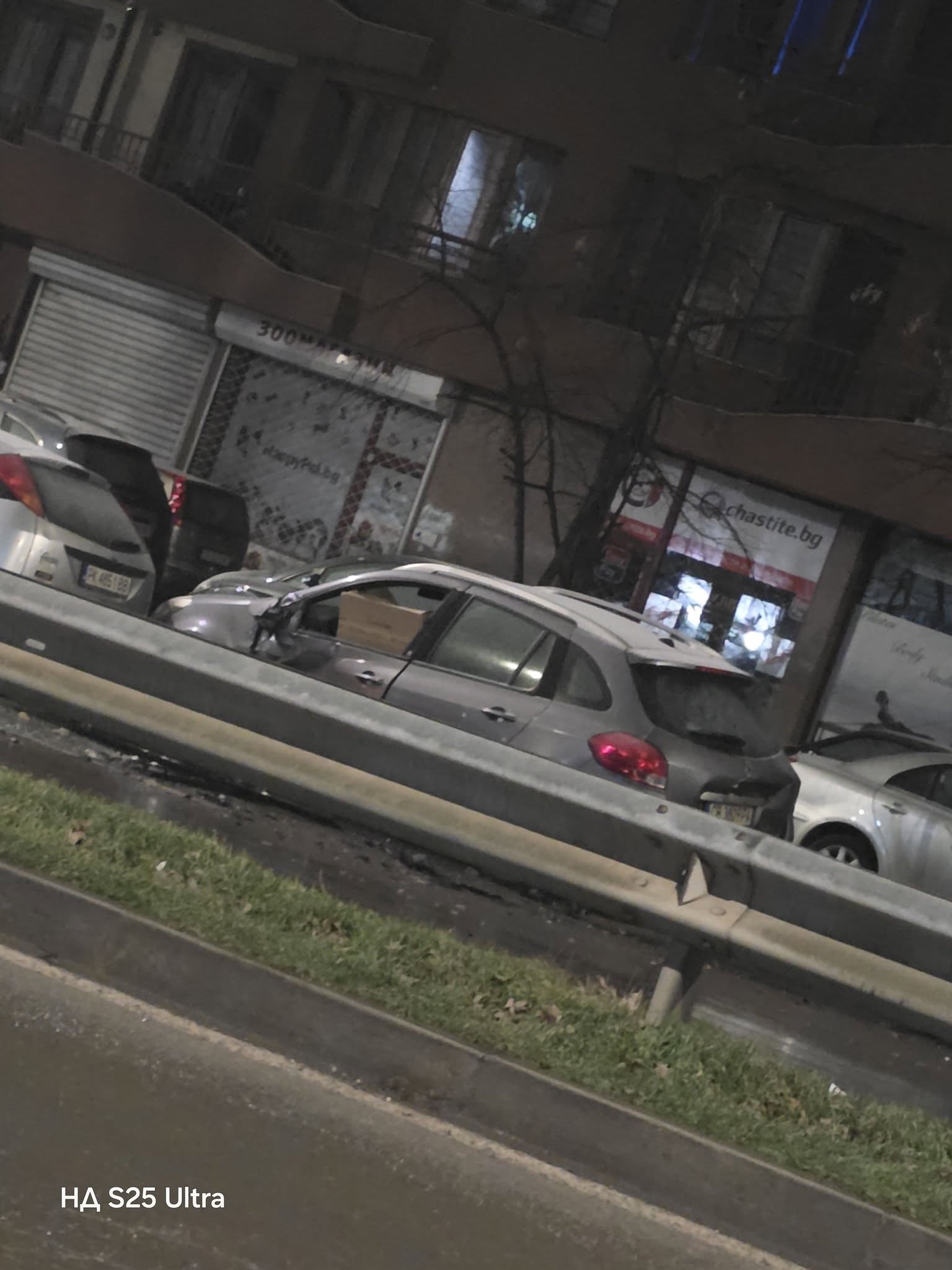 При удара са засегнати и няколко паркирани автомобила по бул. „Панчо Владигеров“. Щетите по колите са сериозни, а по пътното платно са разпилени множество части, предава Блиц.