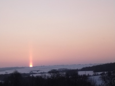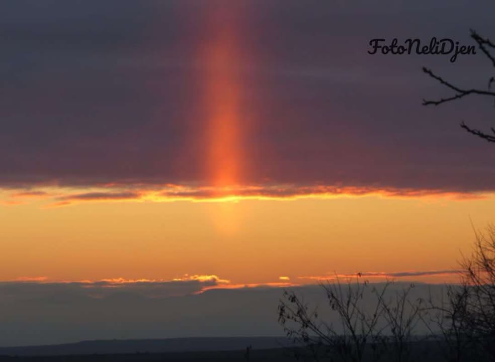 Жители на различни части на България заснеха необичайно светлинно явление по време на изгрев и залез. Снимки с вертикален светъл стълб над хоризонта се появиха в социалните мрежи, заснети на магистрала „Тракия“, в района на Пловдив и в открити полета в Южна България. Това съобщават метеоролозите от Meteo Balkans. Те публикуваха снимки на страницата си, като последната е само на около стотина километра от Бургас - от района на Сливен.