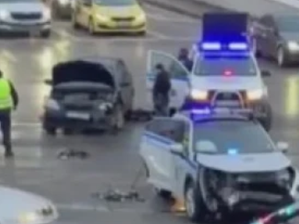 Зрелищна катастрофа в центъра на София. Автомобил се блъсна челно в полицейска патрулна кола на кръстовището под "Моста на влюбените".