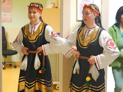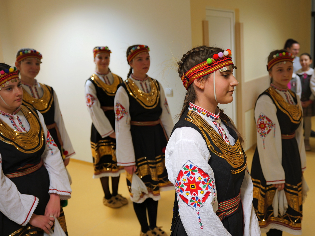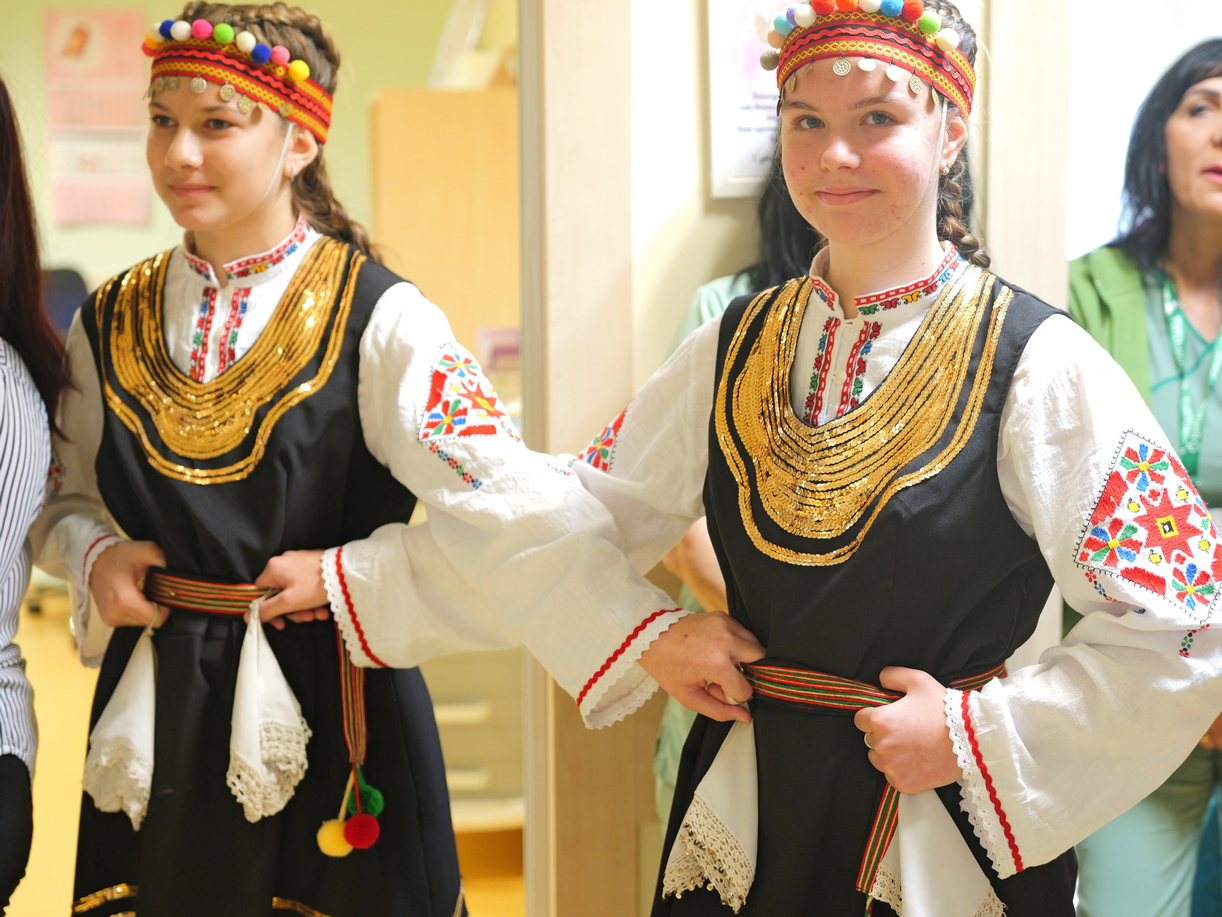 Празникът днес бе още по-специален, благодарение на любовта на децата от ОУ „Елин Пелин“. Те изнесоха специална фолклорна програма, с която зарадваха лекарите, акушерките и медицинските сестри.