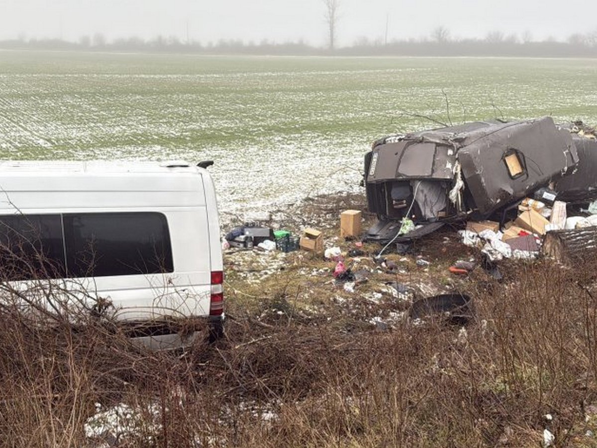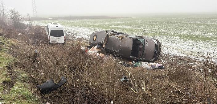 Едното превозно средство дърпало другото, което е било повредено. По неясна причина двата буса се преобръщат и излизат от пътя. При катастрофата има ранени. Четирима са откарани в болница, като състоянието им не е ясно.