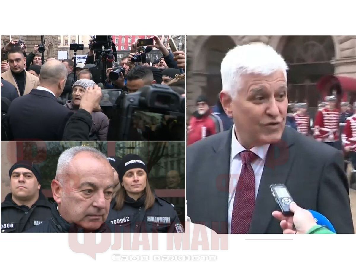 Бившият служебен премиер Гълъб Донев, бившите министри Димитър Стоянов и Иван Демерджиев бяха до Радев, но отказаха да коментират дали се готвят да стават депутати или да се върнат отново в изпълнителната власт.