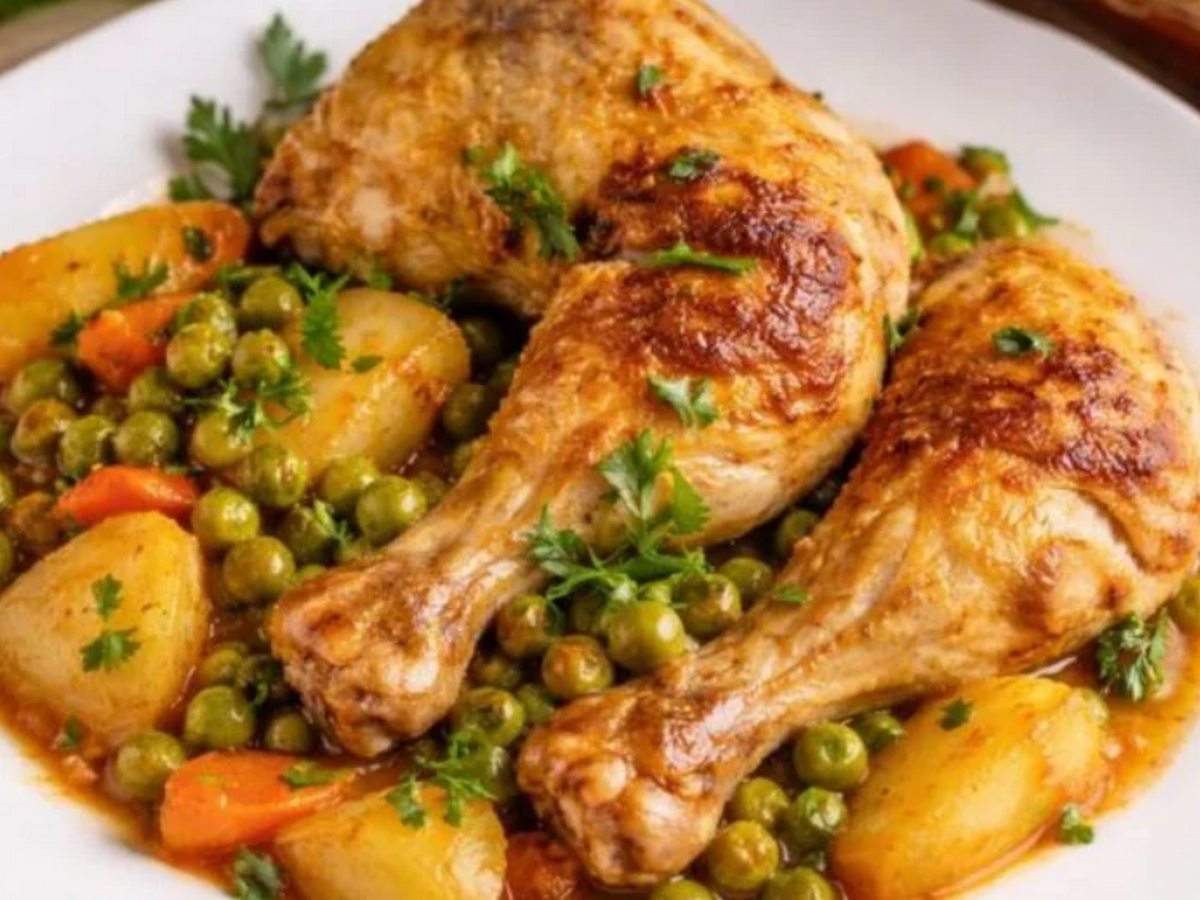 Това ароматно ястие с пилешки бутчета, картофи и грах в гювеч е истинска класика от българската кухня. Приготвя се лесно, без много усилия, а вкусът става богат и наситен благодарение на бавното готвене във фурната.