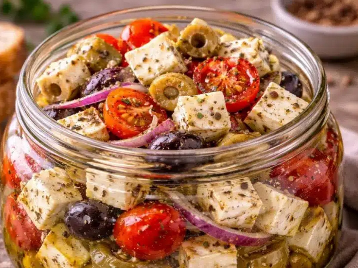 Има рецепти, които винаги спасяват масата – без готвене, без суетене и с ефект като от винен бар. Тази закуска е точно такава. Само няколко продукта, малко време за мариноване и получавате ароматно, красиво и изключително апетитно предястие, което върви еднакво добре с вино, хляб, брускети или просто така, с вилица.