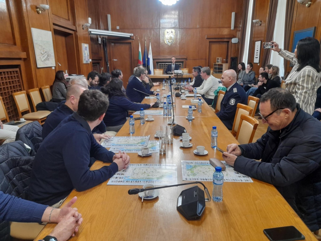 На работна среща представители на организационния комитет на надпреварата от Италия, експерти от Община Бургас в сферата на пътната безопасност, туризма, културата и строителството, представители на Министерството на туризма, КАТ, Областно пътно управление обсъдиха въпроси, свързани с организацията на втория етап от колоездачната обиколка.