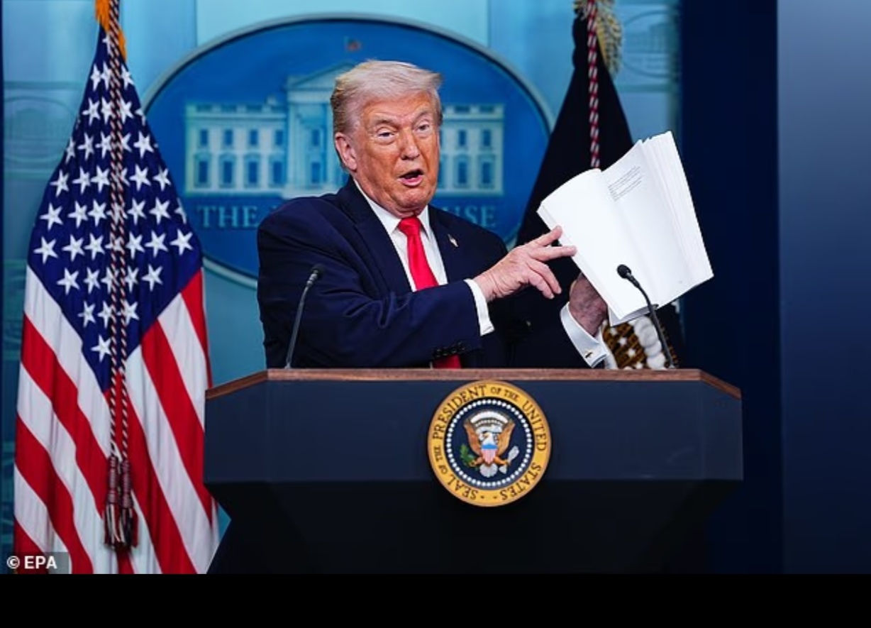 „Уау! Каква гледка!“, възкликнал Тръмп, след като станал от мястото си, отбелязва журналистът Том Леонард. Сцената е била последвана от неловко мълчание и принудена реакция от страна на присъстващите индустриални лидери и членове на администрацията, включително вицепрезидента Джей Ди Ванс и държавния секретар Марко Рубио.
