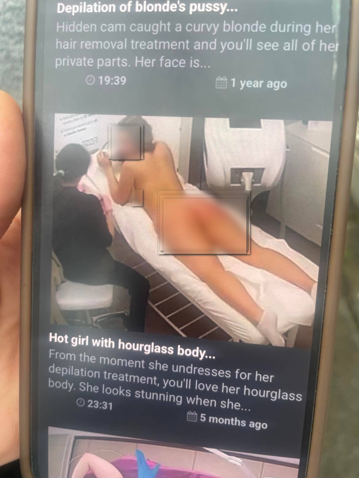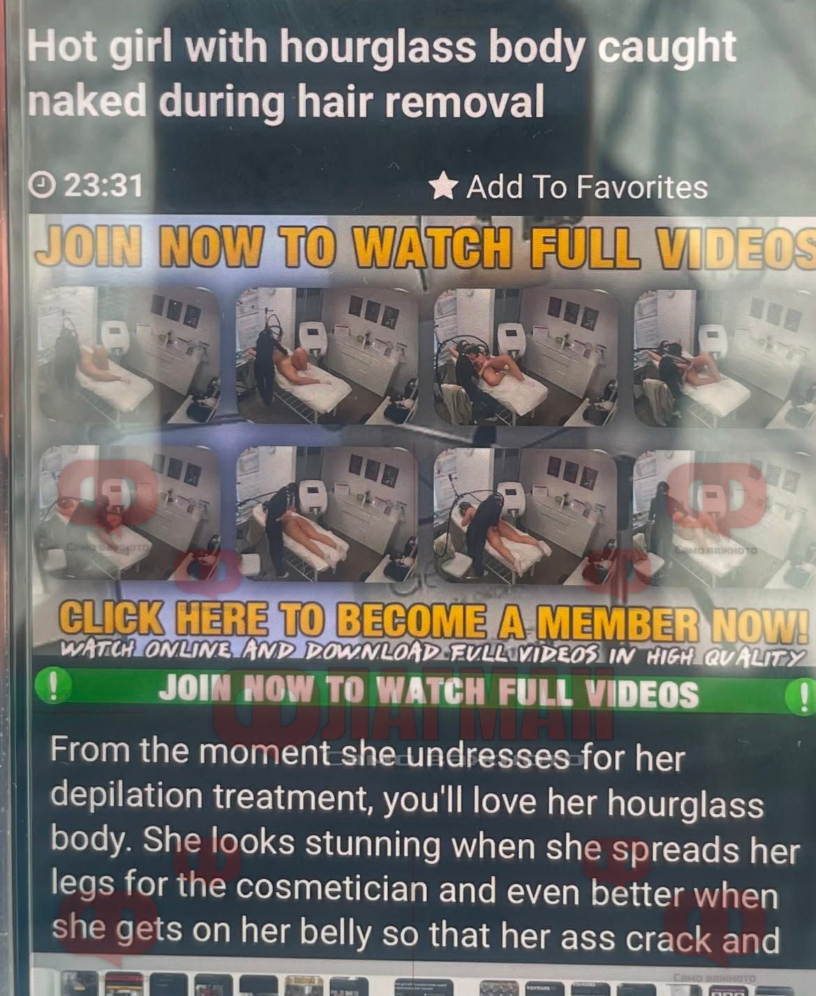 То е снимано от камера в различни пози, докато епилират с лазер косми по интимните ѝ части и бедрата.