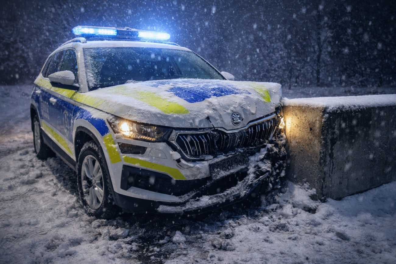 При завой надясно, на заледен и неопесъчен пътен участък, дори високопроходимото возило станало неконтролируемо. Ченгето не успяло да го овладее и се блъска с предна част в бетонен фундамент.