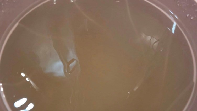 И докато вчера от крана на ваната е текла жълта и мътна вода, то тази сутрин потича бистра вода.