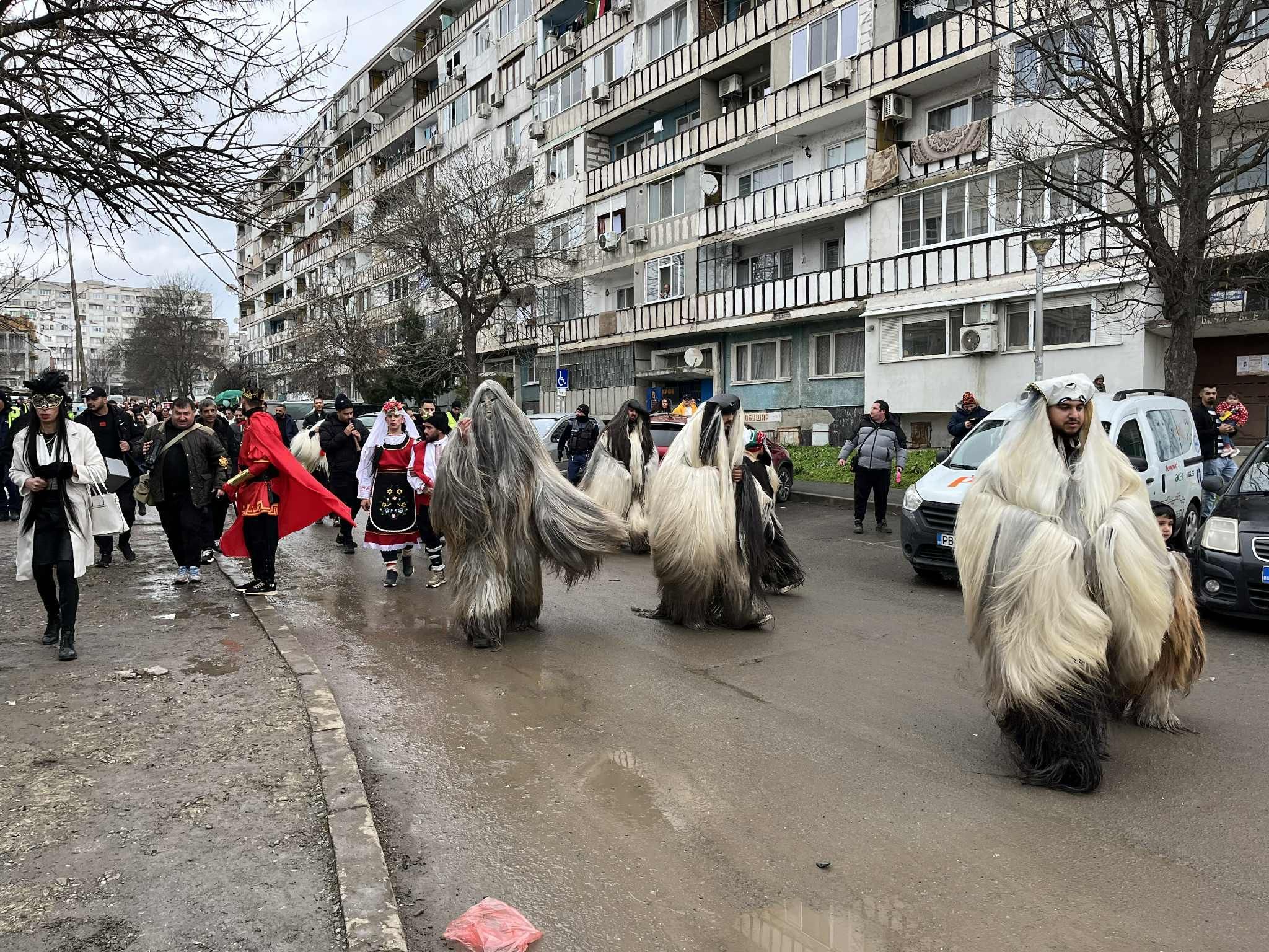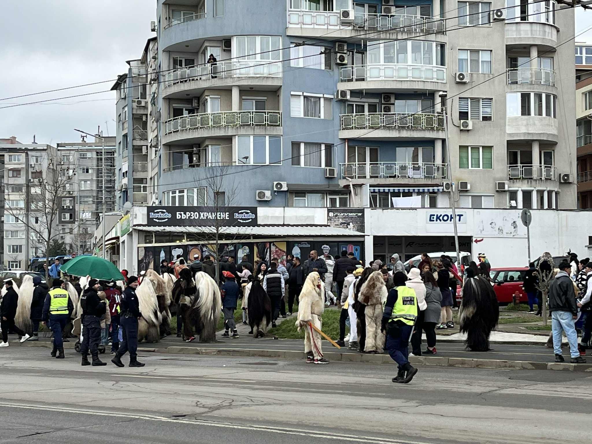 Десетки веселяци от кукерската група предизвикаха голямо шоу в бургаския квартал „Меден рудник“. Заради тях обаче се наложи да бъде отцепено кръстовището до Терминала, а това наруши за кратко време и графика на автобусите от градския транспорт. Появиха се и регулировчици. Десетки полицаи съпровождат маскираните духогонци, а тълпата от зяпачи се разраства. Стотици хора ги съпровождат.
