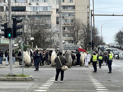 Кукери гонят духове в „Меден рудник“ и блокираха ключово кръстовище