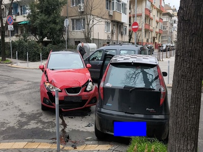 Сеат с бургаска регистрация, преминаващ по ул. „Княз Борис I“ засече червен Фиат, идващ по ул. Патриарх Евтимий
