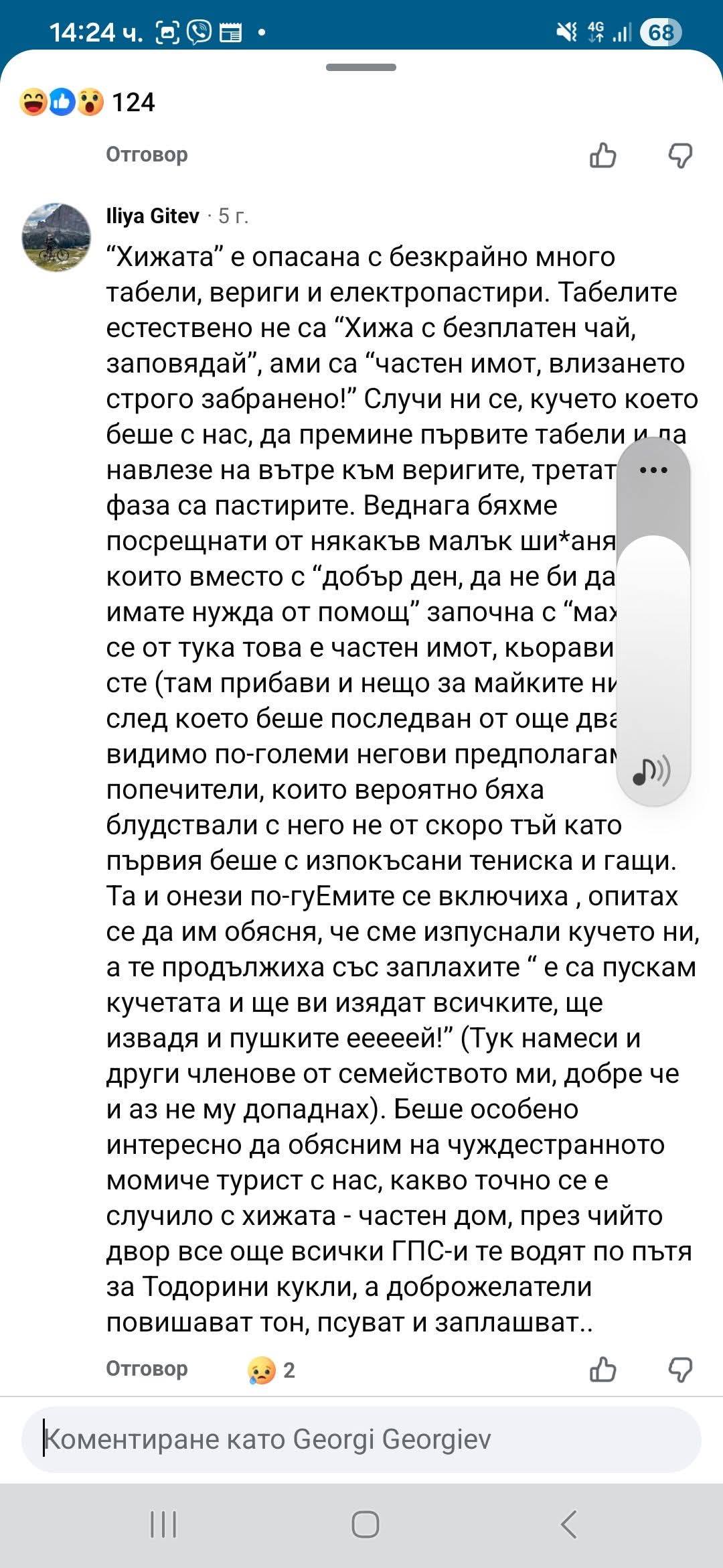 "Обитателите на имота се държаха грубо, напсуваха ни и ни заплашиха, че ще пуснат кучетата и ще извадят пушките", разказва планинарят Илия Гитев преди 5 години