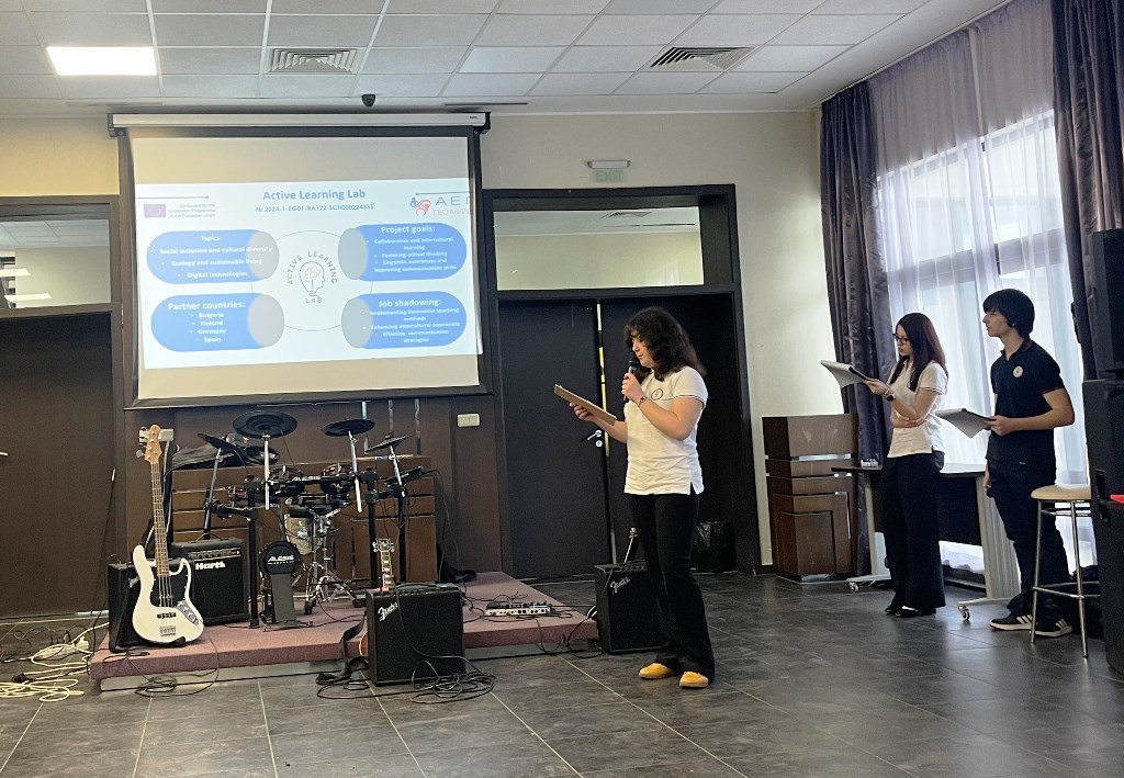 С домакинството си гимназията показва на практика какво се случва, когато ученици от различни държави общуват, обменят опит и работят заедно по общи теми. Проектът „Лаборатория за активно учене“ е в активната си фаза и ще приключи през май, като до момента вече са реализирани мобилности, обменени са добри практики и са представени конкретни образователни резултати пред международните партньори.