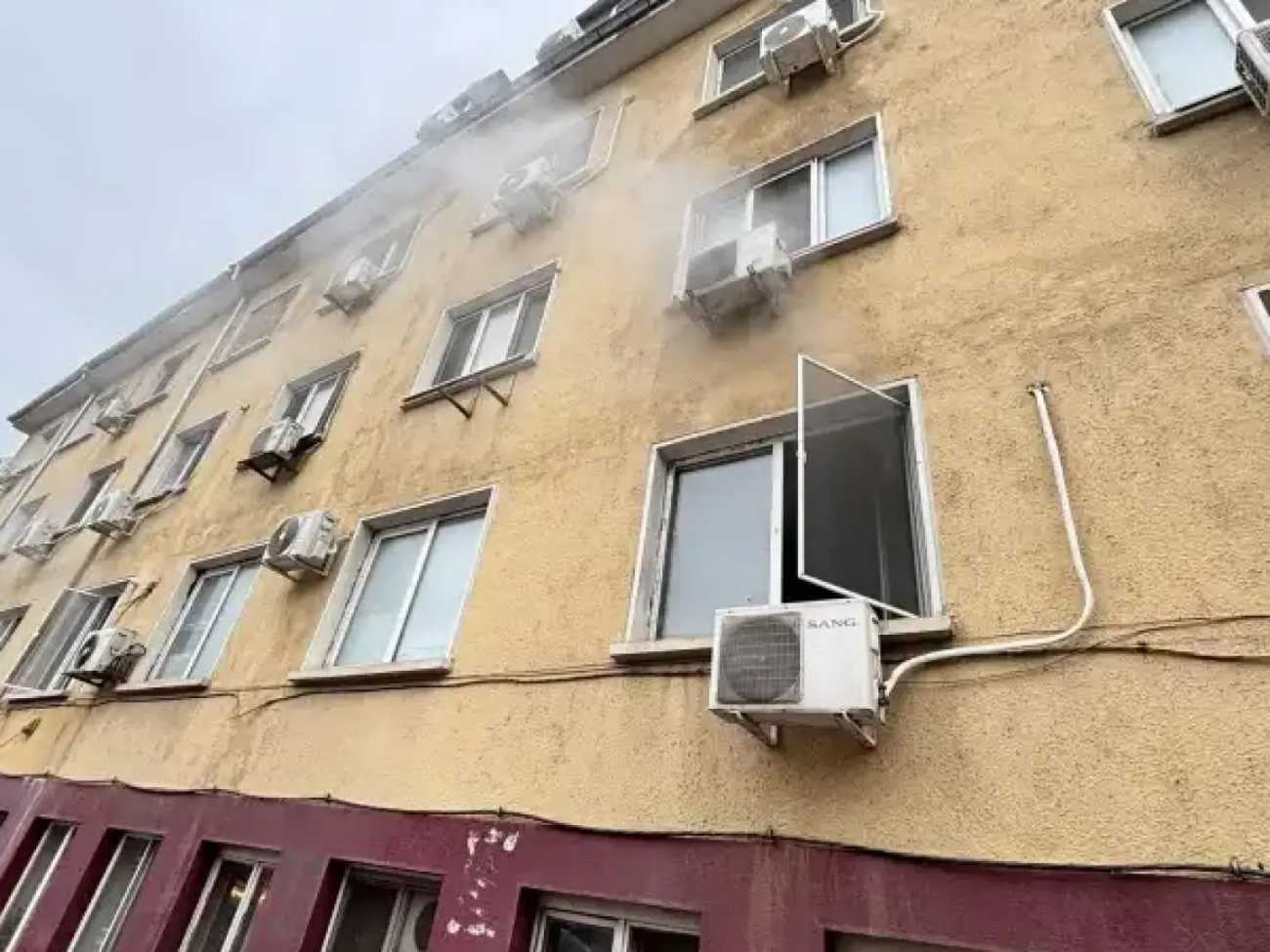 Огнеборците са овладели пламъците, но от прозорците на сградата продължава да излиза гъст дим