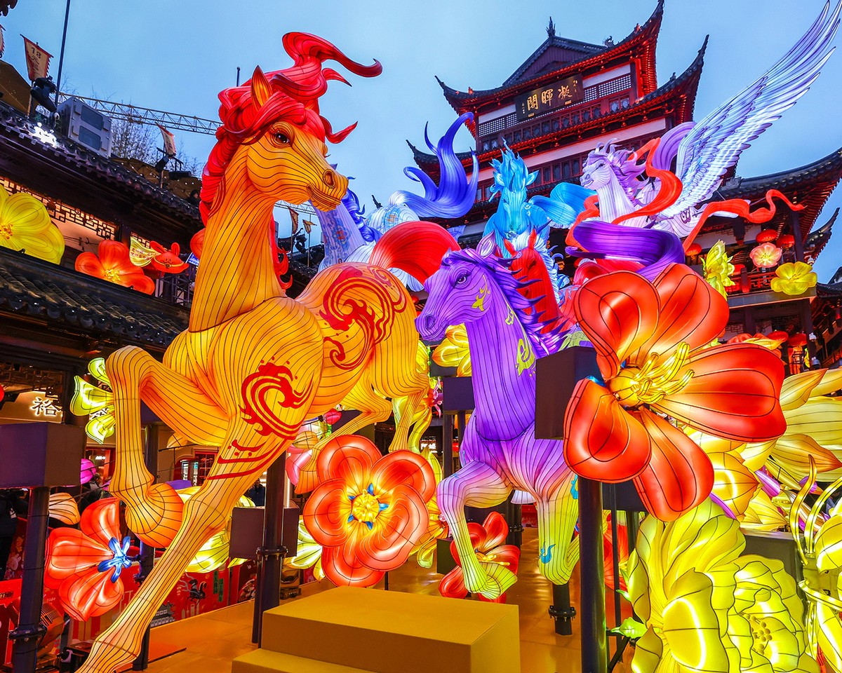 Тази година започва Годината на Огнения кон според китайския зодиак. Знакът се свързва със сила, независимост и динамика. Червеният цвят доминира в украсата като символ на късмет и благополучие. По традиция семействата се събират в навечерието на празника около обща трапеза, а честванията продължават 15 дни и завършват с Фестивала на фенерите на 3 март, предава NOVA.
