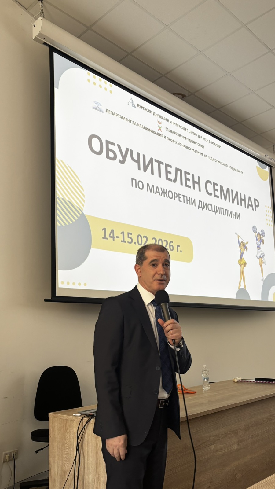 Събитието бе официално открито от ректора проф. д-р Сотир Сотиров в присъствието на представители на академичното ръководство и организаторите. В приветствието си той подчерта значението на сътрудничеството и стремежа към професионално усъвършенстване: „Предложението на Българския чирлидинг съюз беше приятна изненада за нас. Като университет сме креативни и отворени към нови идеи и партньорства. Стремим се ежедневно да надграждаме знанията и уменията си, особено когато става дума за специалисти, посветени на обучението и развитието на младите поколения. Впечатляващият брой от над сто участници показва сериозния интерес към дисциплините. Обучението съчетава теория и практика, защото движението и спортът са част от нашия живот.“
