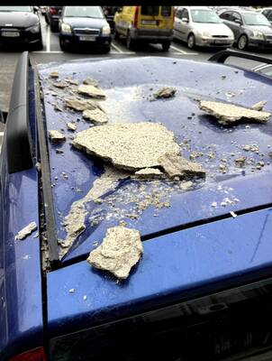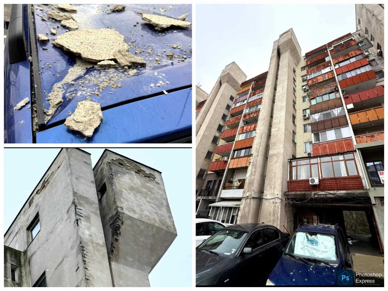 Големи парчета мазилка са се срутили от външната фасада на блок 47 в бургаския квартал Зорница и са паднали върху паркиран лек автомобил. За инцидента сигнализира читател на Флагман.БГ, който предупреждава за реална опасност за преминаващите хора.