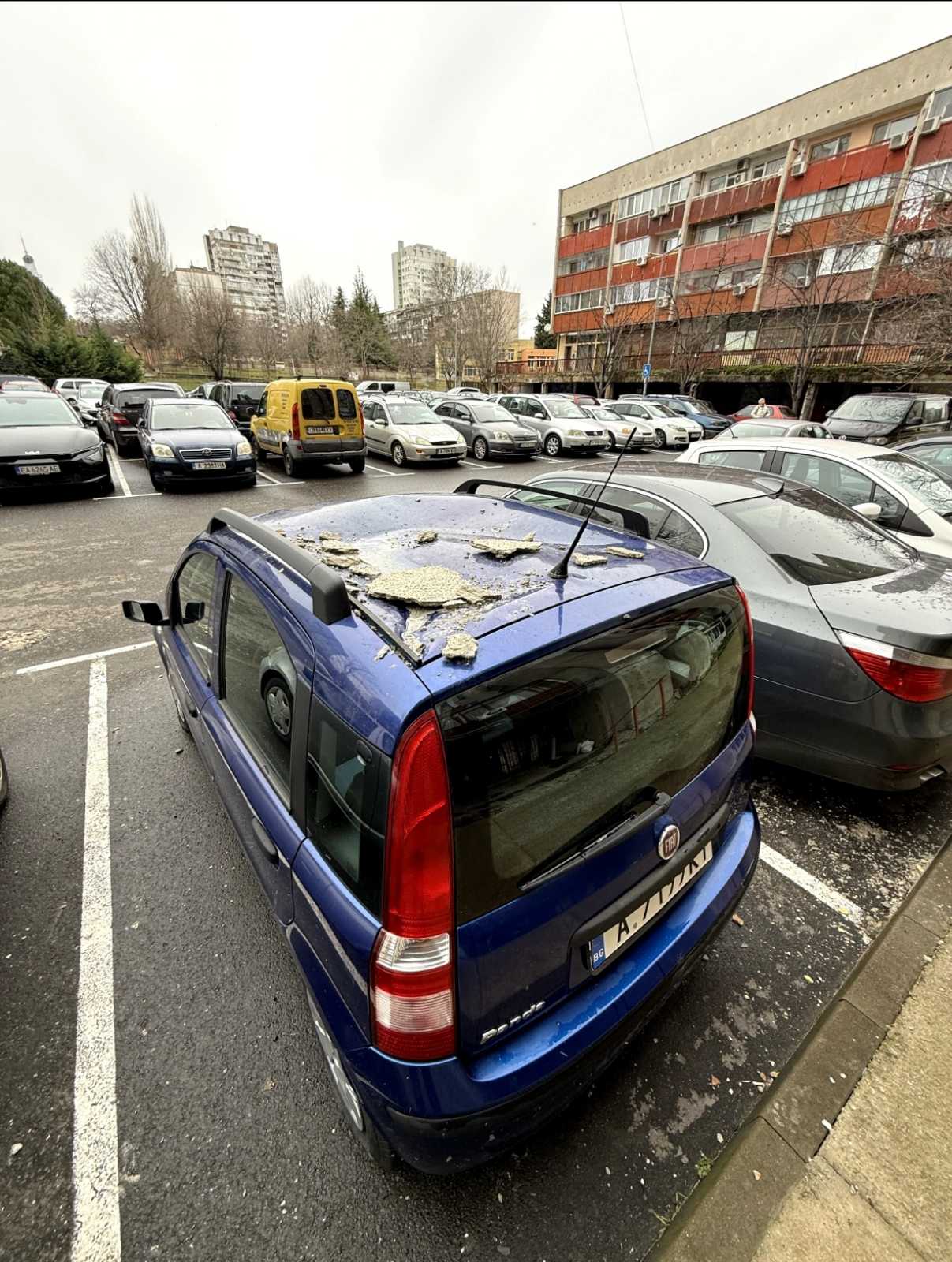 По думите на Атанас Тончев, живущ във вход 5 на сградата, част от мазилката е паднала върху кола марка "Fiat", като от удара е вдлъбнат предният капак. Отломки са се разпилели и по пътното платно, както и върху пешеходната пътека в района.